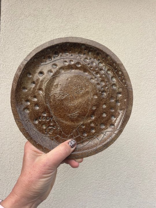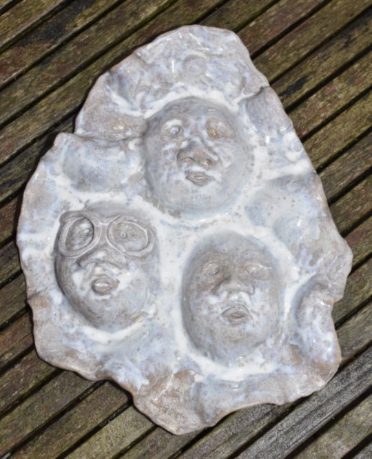 Håndlavet relief i stentøj, skabt med fokus på udtryk og karakter.