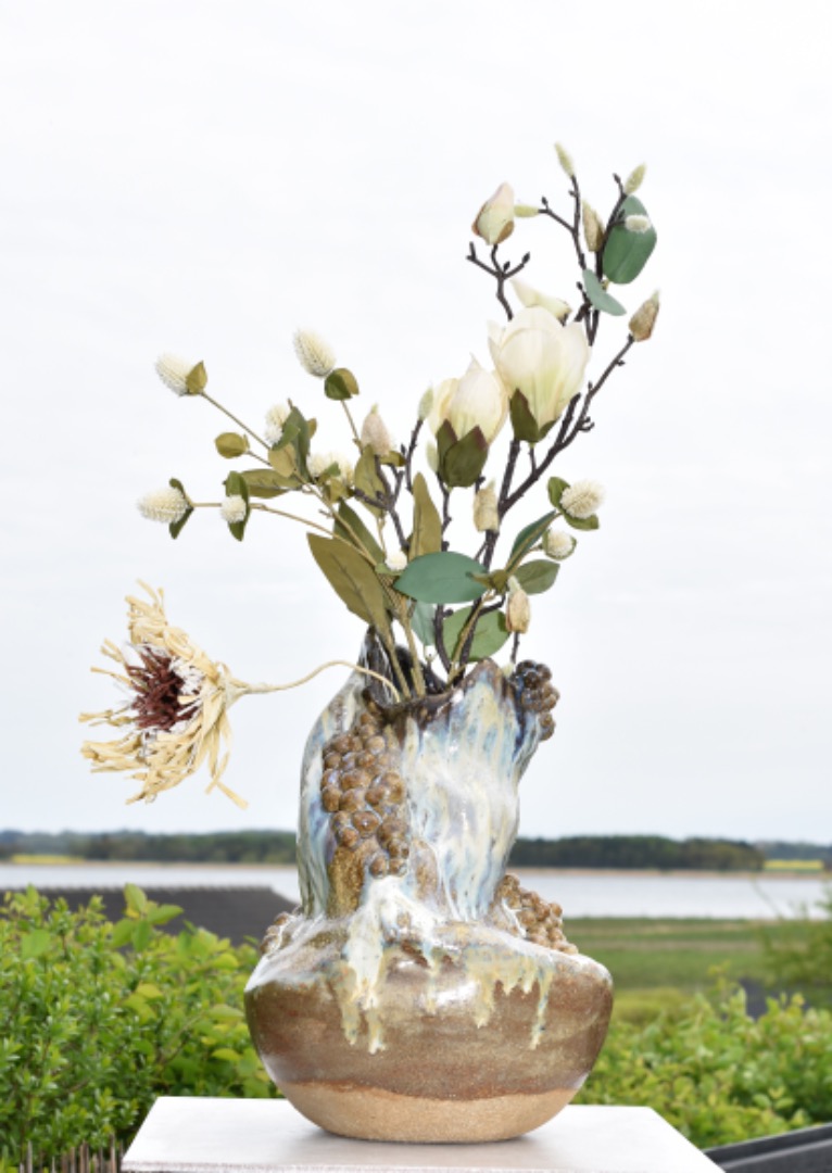 Skulpturel krukke - kan købes i Park Galleriet inde i Blokhus skulptur park